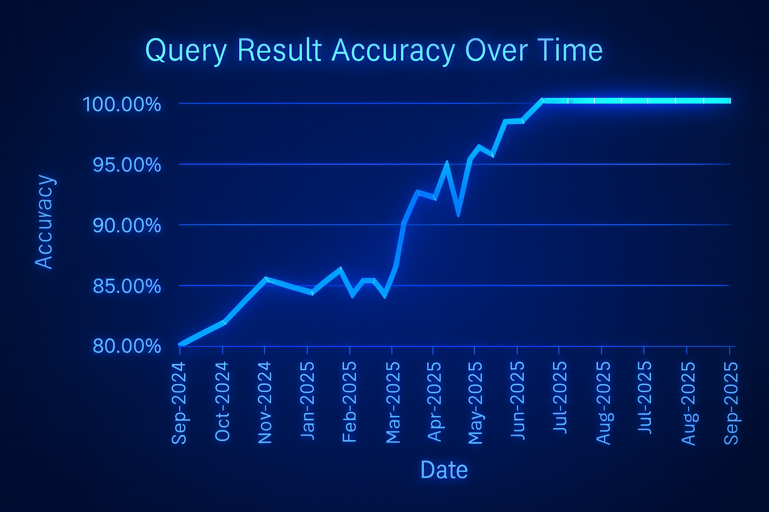 It is important to note that the process wasn’t limited to a single use case. We tested and refined across multiple categories that our customer was serving, proving that the approach scaled across their business. Even more categories are slated for deployment soon, promising further impact. With every cycle, queries became more consistent, and responses aligned closely with our customer’s policies. Over time, accuracy climbed steadily, culminating in a sustained 100% over the past two months!